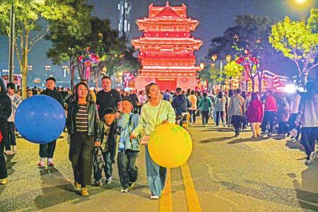 在大同古城,大型行进式旅游演艺《如梦大同》如期上演。剧情的跌宕起伏、市井街巷的烟火气息、历史的思考与顿悟等在场景变换与音乐激荡之间表现得淋漓尽致,整场演出让人观之意犹未尽,回味悠长。演出结束时,全体演职人员向观众鞠躬致谢,观众也回之以绵绵不绝的掌声与喝彩。另一边,南城墙关城内的《因为大同》实景演艺,借助城门、城墙等场景,融合音乐剧、舞蹈、武术与高科技手段,生动还原了北魏时期雄浑壮阔的历史风貌,进一步丰富了夜游体验内容,使观众近距离感受到大同历史与人文的厚重。
