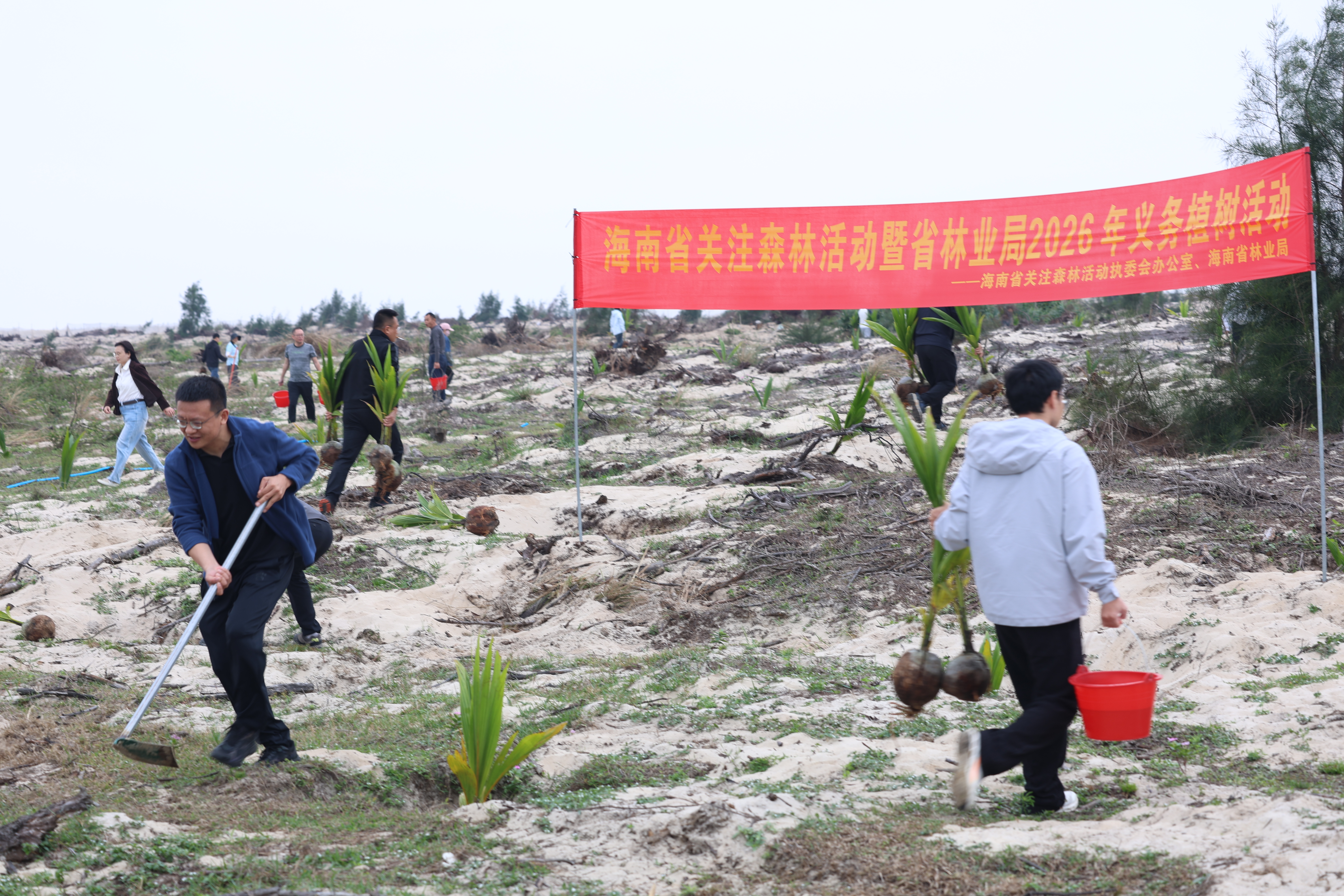 3月12日,海南省林业局、省关注森林活动组委会成员单位及部分省直机关共17个单位的工作人员,以及社会志愿者共400余人,在文昌市岛东林场五龙作业区沿海防护林带开展义务植树活动,种植椰子苗100余亩2700株。