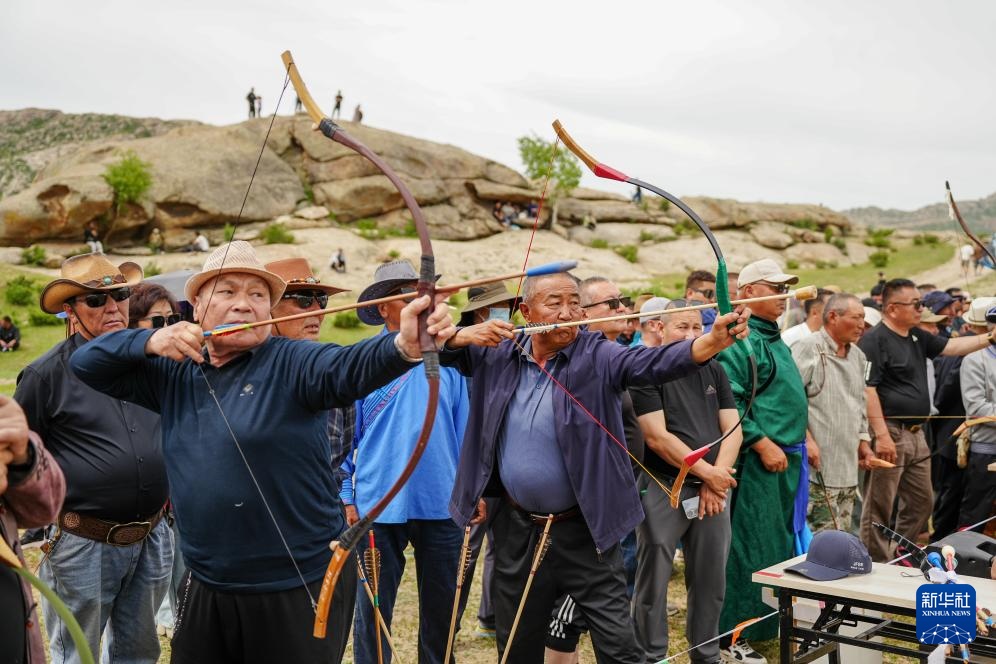 5月24日,在新疆阿勒泰市汗德尕特蒙古族乡,选手参加射箭比赛。新华社记者 徐宏岩 摄